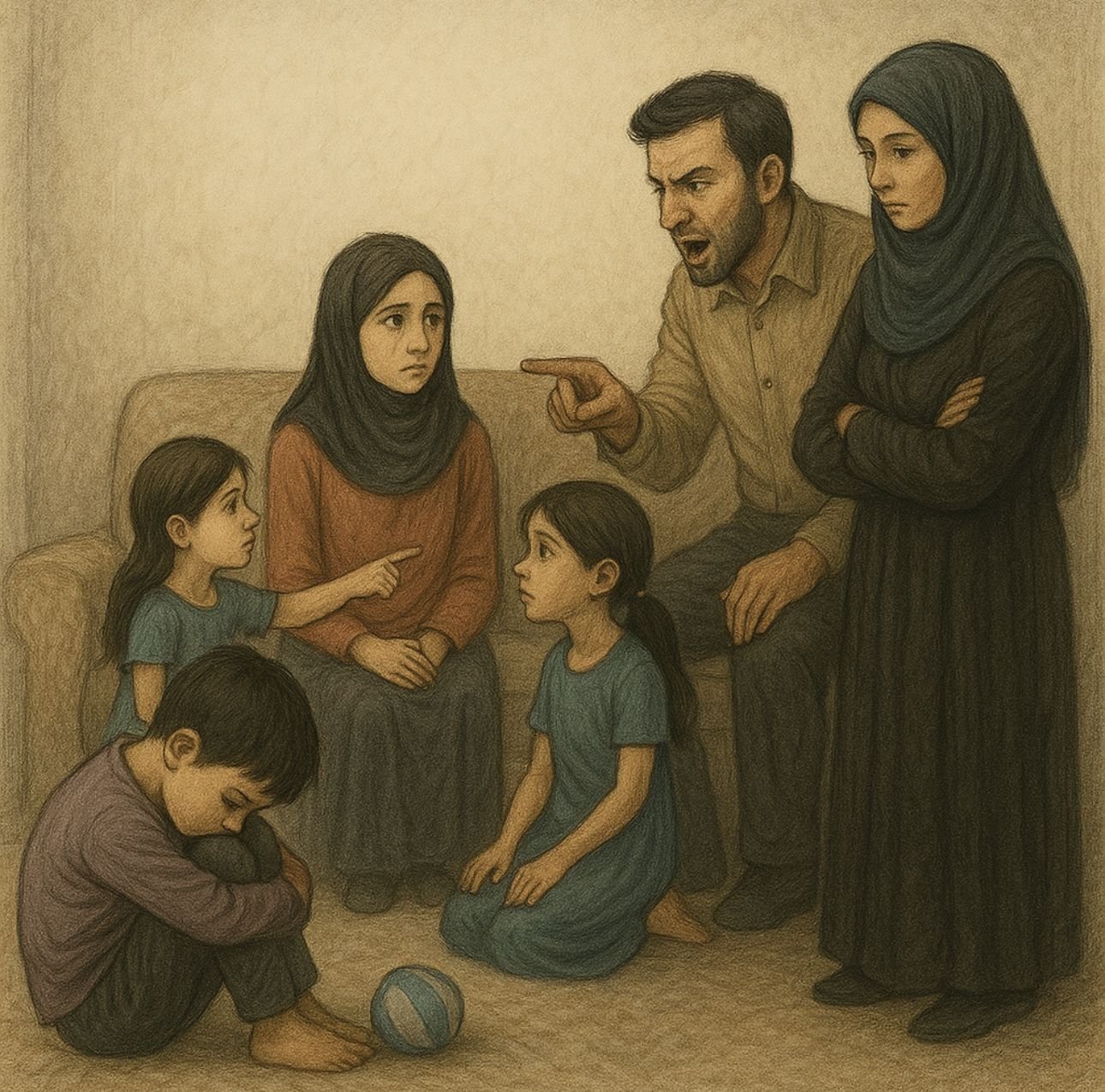 الأب أو الأم يتحولان إلى قاضٍ، ومحقق، وجلاد في آن واحد، بينما يضيع معنى الحضن والأمان.