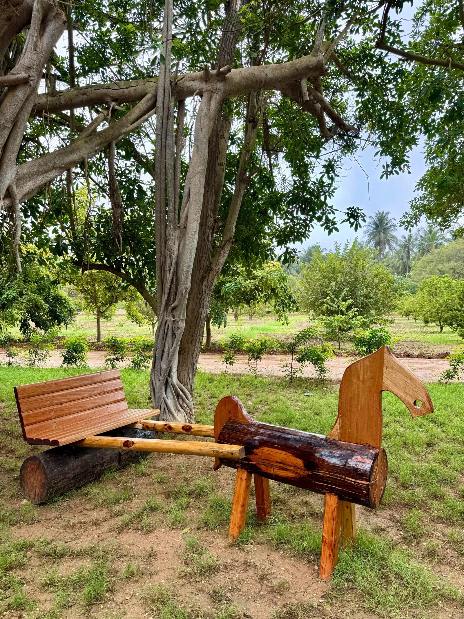 ، وهناك أيضا أشجار النارجيل والتمر الهندي وأشجار الصبار التي تدخل منتجاتها في الصناعات التقليدية وتستخدم ثمارها في الأطعمة والطب الشعبي. ويمكن للزائر ان يتعرف على السلالة البريطانية من الأبقار المعروفة باسم “جيرسي”، التي تتميز بقدرتها العالية على إنتاج الحليب الغني بالدهون والبروتين.