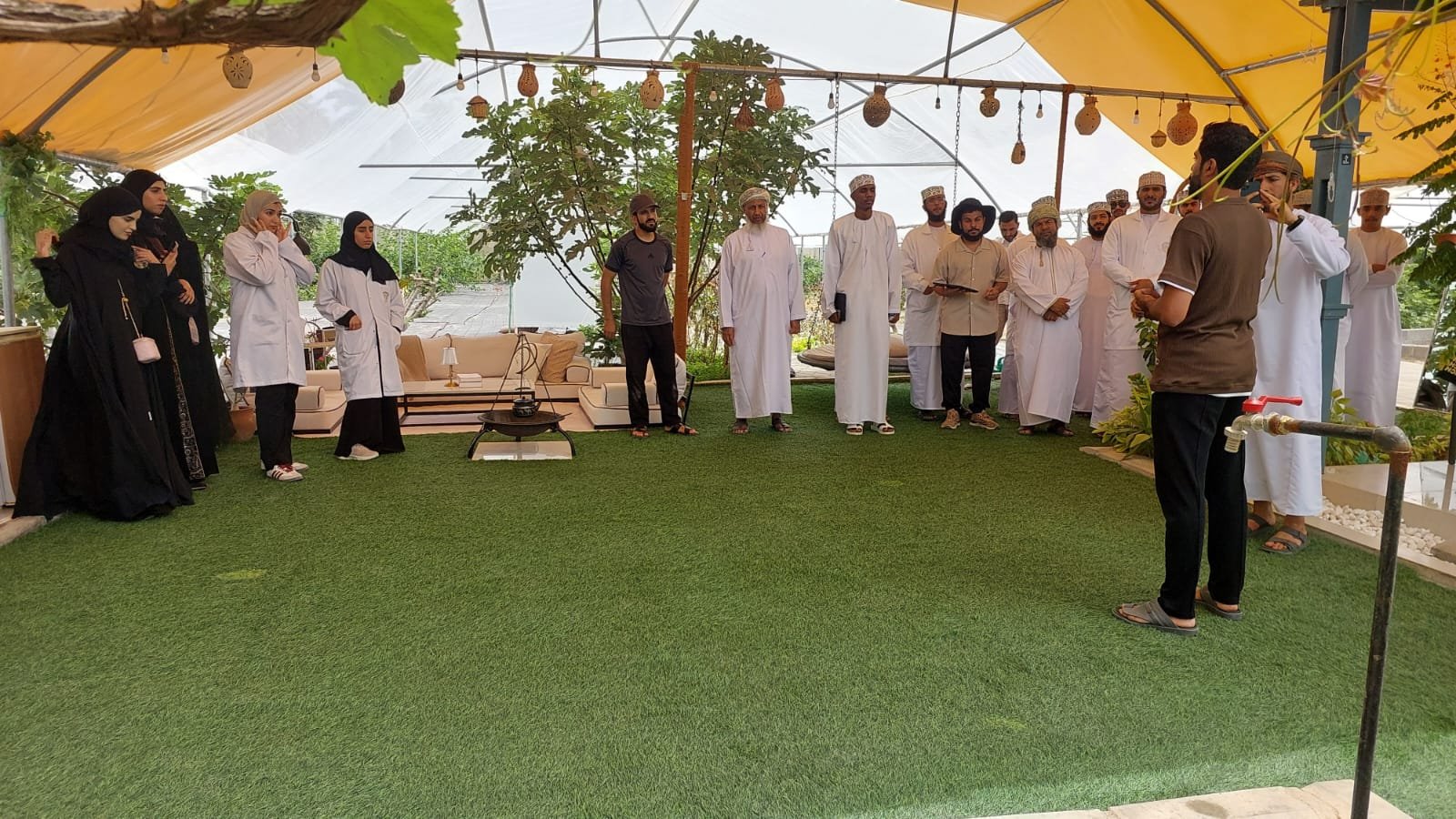 وشهدت الزيارة حضورا اكاديميا ممثلا في عيسى بن هاشل المهمولي مشرف قسم علم النبات بكلية العلوم الزراعية و البحرية بجامعة السلطان قابوس، والاستاذ الدكتور محمد فاروق رئيس قسم علوم النبات بالكلية ومدرس مادة انتاج المحاصيل الحقلية، حيث رافقا الطلبة خلال البرنامج الميداني واثريا الجوانب العلمية والتطبيقية للزيارة.