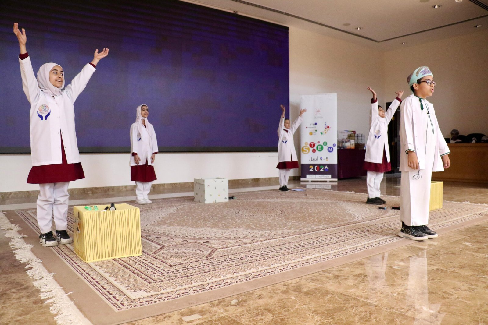 وعلى هامش الحفل اطلعت راعية الحفل على المعرض المصاحب وما حواه من أركان علمية في مجال الابتكار والروبوت والبرمجة وتقنيات الواقع الافتراضي والعلوم الزراعية والصحية والبيئية وغيرها.