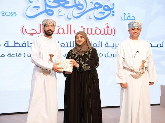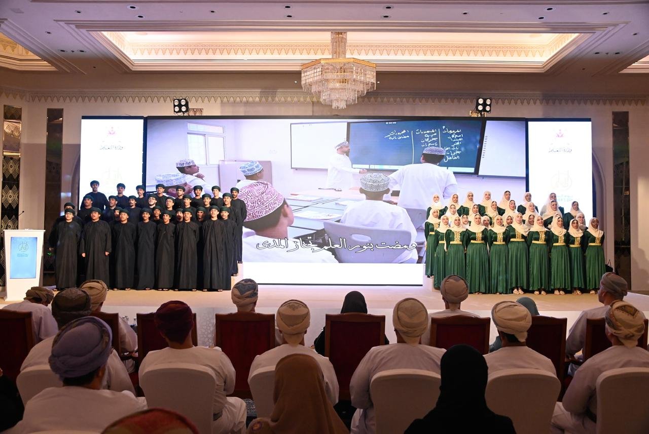 وأضافت في كلمتها إنّ ما نلمسُه من دعمٍ وتمكينٍ للمعلمِ، ورعايةٍ لمسيرتِه المهْنيةِ، إنما يعكسُ رؤيةَ وطنٍ تؤمنُ بأنَّ التعليمَ هو الاستثمارُ الأبقى، وأنَّ الإنسانَ هو الثروةُ الأسمى، وأنَّ المعلمَ هو الركيزةُ التي يُبنى عليها حاضرُ الأجيالِ ومستقبلُها. بعدها تواصلت فقرات الحفل فتم تقديم لوحة فنية بعنوان “النجم العالي” ثم تكريم الدفعة الثانية من المجيدين، ثم قدم طلبة وطالبات محافظة مسقط لوحة فنية بعنوان “لك الوفاء” وهي من الفنون التراثية العمانية على أنغام فن “الويلية” .وفي الختام قدمت المديرية العامة للتعليم بمحافظة مسقط هدية تذكارية لراعية الحفل قدمها الدكتور علي الشكيلي المدير العام للمديرية العامة للتعليم بمسقط .