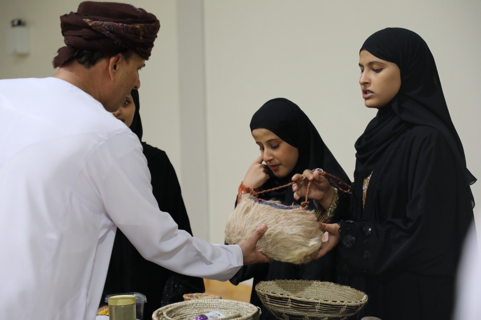 وفي حفل الختام اقيم معرض تراثي اشتمل على الأكلات الشعبية، وعرض المستحضرات التجميلية التراثية مثل الكحل، نقش الحناء، زلباس الرأس وتطبيقها على الطالبات، وكذلك الحياكة بالصوف المصنوع والملون بالطريقة التقليدية، وعرض أدوات تراثية مصنوعة من جلد الحيوانات ومن السعف.