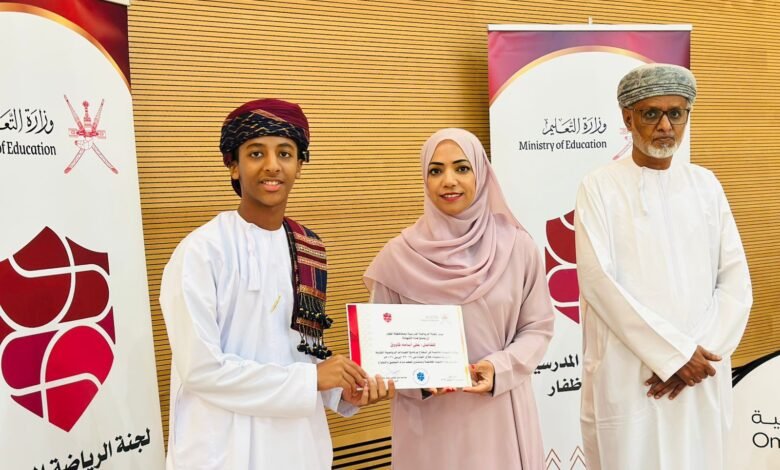 وأقيم حفل الختام تحت رعاية نظيرة بنت أحمد الحارثية المديرة العامة المساعدة للمرشدات بالمديرية العامة للكشافة والمرشدات والأنشطة الطلابية رئيسة الاتحاد العماني للرياضة المدرسية وبحضور سعيد بن مسعود الكثيري المدير المساعد لدائرة الكشافة و المرشدات والأنشطة الطلابية ،وعدد من أعضاء اللجنة بتعليمية ظفار وعدد من أولياء الأمور.