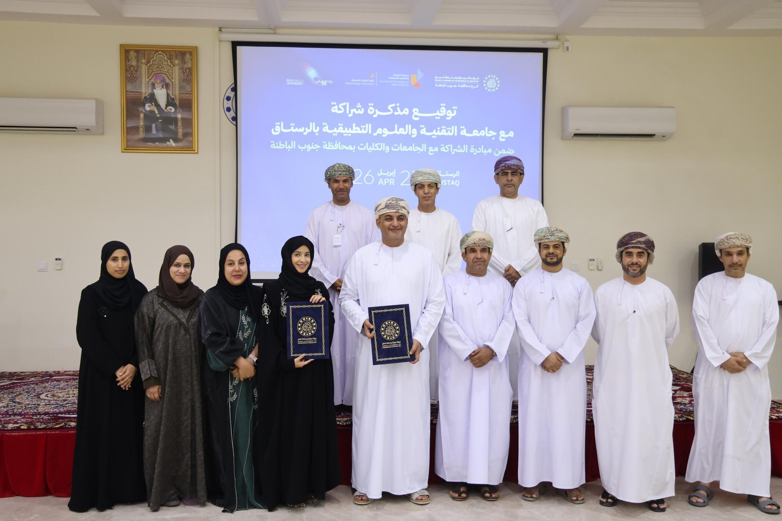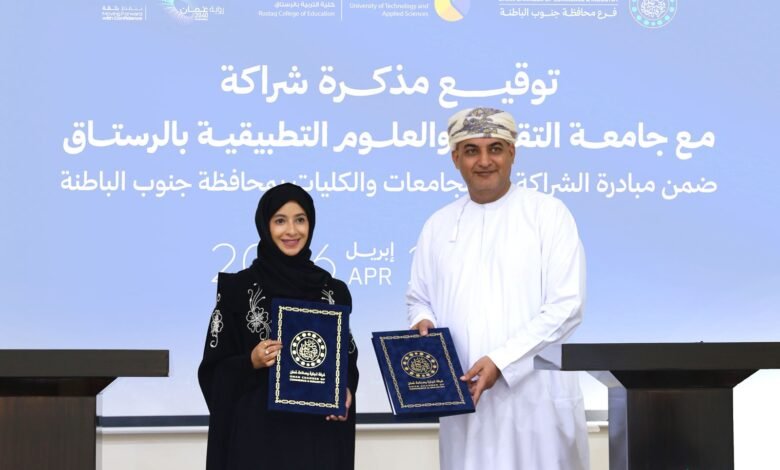 مذكرة شراكة بين فرع غرفة تجارة وصناعة عُمان بمحافظة جنوب الباطنة وجامعة التقنية والعلوم التطبيقية بالرستاق لتعزيز ريادة الأعمال والابتكار