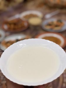 في البدء توضع المكونات في قدر بها ماء فاتر ثم توضع على النار، ثم يجري تحريكها باستمرار قرابة عشرين دقيقة حتى تتماسك وتأخذ شكلها النهائي، ثم توضع في أطباق جاهزة للأكل. ويمكن تناولها مباشرة بعد أن تنخفض درجة حرارتها، فيما يفضل البعض تناولها باردة بعد وضعها في الثلاجة لبعض الوقت.