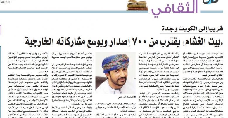 تستعد مؤسسة بيت الغشام لتقديم عناوين جديدة من إصداراتها خلال الأسابيع المقبلة، مع اعتماد مشاركات جديدة في معارض الكتب خاصة الخليجية، ضمن سعيها لتوسيع قاعدة مشاركاتها الخارجية وحضور الكتاب العماني فيها.