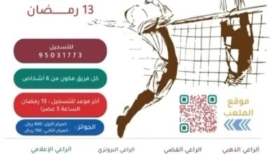 ينظم فريق اتحاد العقدة الرياضي الثقاقي التابع لنادي الشباب العماني الخميس المقبل ١٣ مارس ٢٠٢٥م مسابقة التحدي لبطولة الكرة الطائرة…