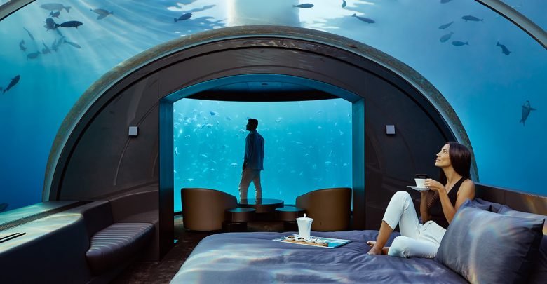 وعند النزول لخمسة أمتار تحت سطح الماء، سيجد الضيوف في الشقة مرافق بتصاميم رائعة تضم غرفة معيشة، وغرف نوم، وحمامات، مع إطلالات بانورامية مفتوحة على المحيط.