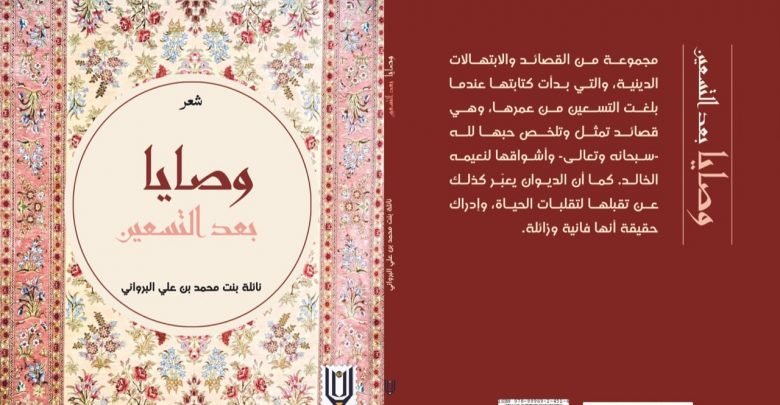 نائلة البروانية حياةٌ تكونُ من الشهواتِ.. متاعُ الغرور بذلك جاءَ الخطابُ الإلهيُّ منذ الزبور لكنَّما العبدُ ينسى ويجهلُ ثمَّ يجور متاعُ الغرورِ متاعٌ قليل ولو عشتَ ألفًا فلا بدَّ يأتيكَ يومُ الرحيل وتفنى الحياةُ، ويأتي الحسابُ الثقيل فهذه الحياةُ ولو أعجبتنا هي الغادرَة خُلقنا لنعبُدَ فيها ونزرعَ ما سوف نجنيه في الآخرة فإما نجاةٌ وإما ستلحقنا الكرَّةُ الخاسرة ففي جنَّة الله فوزٌ مبينٌ نعيمٌ مقيمٌ وعزٌّ مكينٌ وما لا يطيقُ الخيالُ جمالًا.. وحالا شبابٌ يدومُ ولا ينقضي وقلبٌ من الحُزنِ والخوفِ دومًا خَلي أمانٌ وسَعدٌ يطولُ خلودًا ولا ينجلي إلهِيَ ندعوك فارفق بنا ولا تبتَلِنا بظلمٍ فليس لنا عن نَدَاكَ غنى وكنْ في الختام بنا راحمًا وخذنا إليكَ من المؤمنين إلهِيَ واغفر لنا ما مضى وثقّل من الخير ميزاننا وقدّرْ لنا في الجِنانِ مقامًا يكون الخلودُ به منزلًا * من ديوان وصايا الصادر عن دار لبان -- محمد بن سيف الرحبي